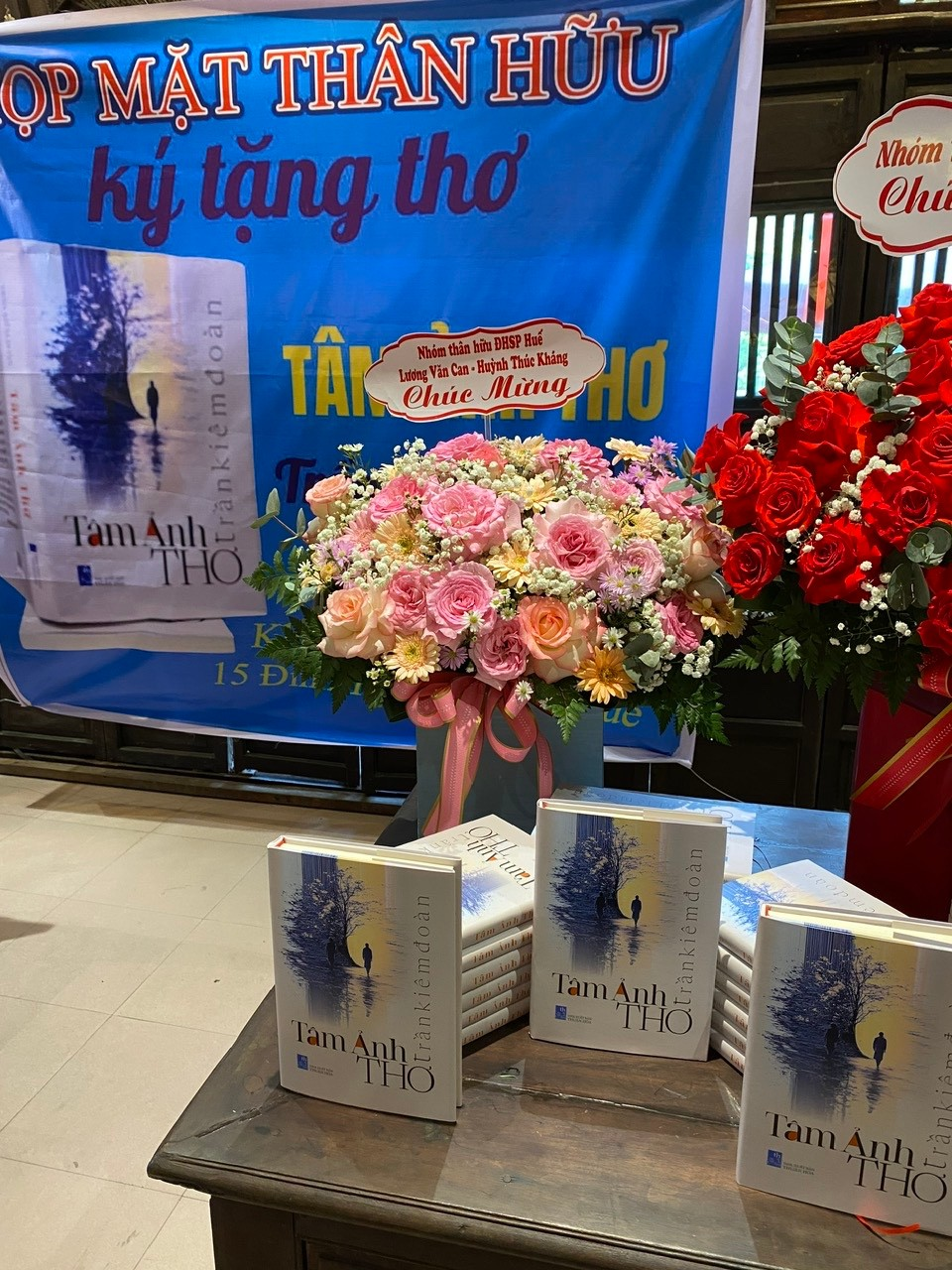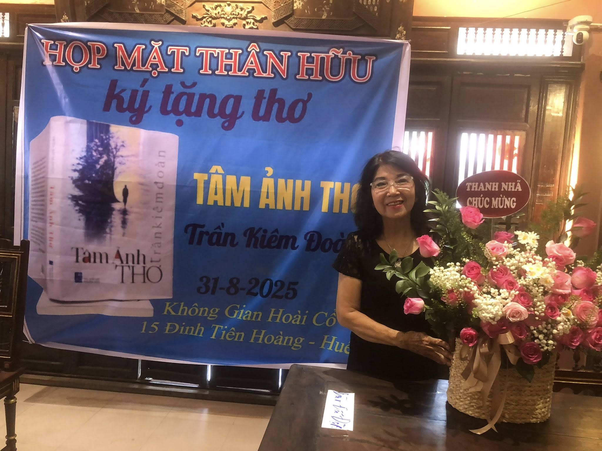 Nhóm LVC-HTK gửi đến lẳng hoa chúc mừng đồng môn ĐHSP Huế, cũng là cựu GS trường Trung học Nguyễn Hoàng Quảng Trị, Trung học Nguyễn Tri Phương Huế, Đồng Khánh-HBT Huế, Nhà Văn, Nhà thơ Trần Kiêm Đoàn đã có nhiều tác phẩm viết về Huế.