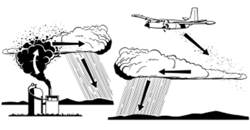 Gieo mây có thể được thực hiện bằng máy phát điện mặt đất hoặc máy bay