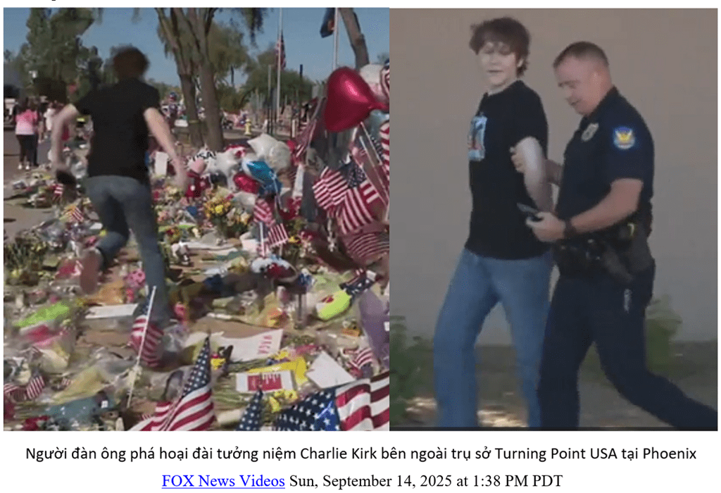 (Người bắn chết Charlie Kirk là Tyler Robinson 22 tuổi, trong buổi diễn thuyết tại khuôn viên Utah Valley University, quận Orem, tiểu bang Utah, USA hôm 10 tháng 9 năm 2025. Robinson đã dùng khẩu súng săn cực mạnh loại Mauser 98, cỡ nòng 30-06 (đầu đạn đường kính 7.62mm và dài 63mm), bay thẳng và nhanh, do quân đội nước Đức chế tạo, rất dễ sử dụng, chỉ bắn từng phát một, rất chính xác. Qua ống nhắm tân tiến, viên đạn xuyên qua cổ Charlie Kirk. Trong bệnh viện, Charlie Kirk đã được ghi nhận là đã qua đời. Về Tyler Robinson, sau khi bắn Kirk từ trên mái nhà, cách chỗ Kirk đứng nói khoảng 150 mét, Robinson đã tháo bỏ bộ đồ thường, thay bằng bộ đồ đen mang sẵn khi giấu súng, xong xách súng chạy vào rừng sát khuôn viên Utah Valley University, quăng súng và trốn mất. Cảnh sát đã tìm thấy khẩu súng Mauser 98 đã bị cưa ngắn nòng để tăng tầm sát hại cùng 3 viên đạn gồm một viên đã cho vào buồng súng cùng 2 viên trong bao súng dự bị.