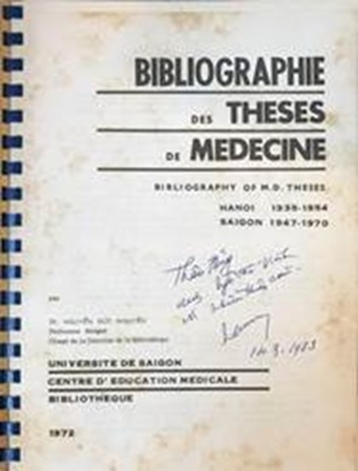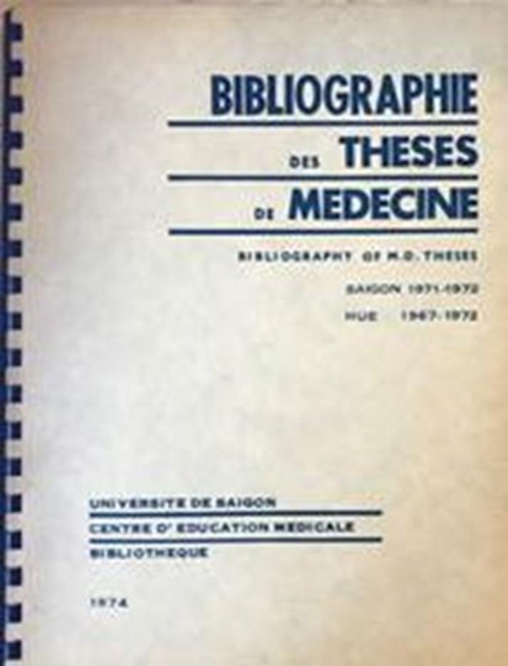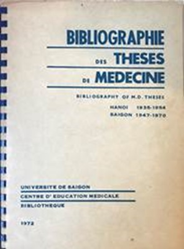 Hình 18: Bibliographie des Thèses de Médecine; Tome I: Hanoi 1935-1954, Saigon 1947-1970; Tome II: Saigon 1971-1972, Hue 1967-1972. [nguồn: tư liệu Ngô Thế Vinh]`