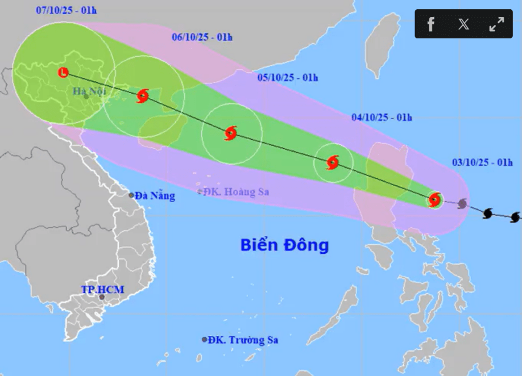 Dự báo hướng đi của bão Matmo. Ảnh: NCHMF (Thái Cát: Hình như cơn bão 11 ni cũng bắt nguồn từ Guam?!)
