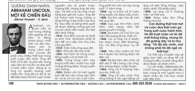 Có thể câu chuyện này sẽ giúp bạn hiểu ra rằng tất cả chúng ta đều có khả năng định đoạt được số phận mình. Có rất nhiều “ABRAHAM LINCOLN” trong chúng ta, biết đâu bạn cũng là một người như vị danh nhân ấy mà bạn chưa biết đấy thôi… Mến chúc quý bạn một ngày an lành. Người động viên đồng hành trong chủ nghĩa lạc quan của bạnMichel Poulaert.Thailan /phannữlan dịch======================