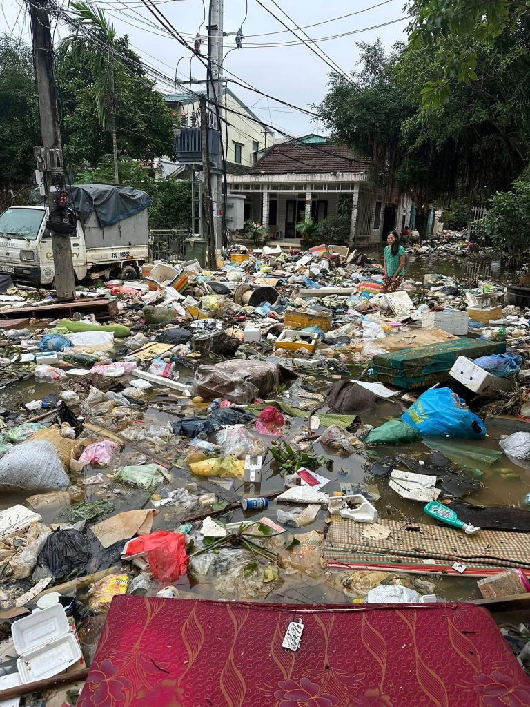 Cũng không thể kìm được cảm xúc khi một thành phố xanh, sạch đẹp chỉ một tuần trước đây đã biến thành một bãi rác khổng lồ đầy ô nhiễm. Những bãi rác này đang được các công nhân vệ sinh môi trường cật lực dọn dẹp, mong sớm trả lại môi trường trong lành cho Huế.